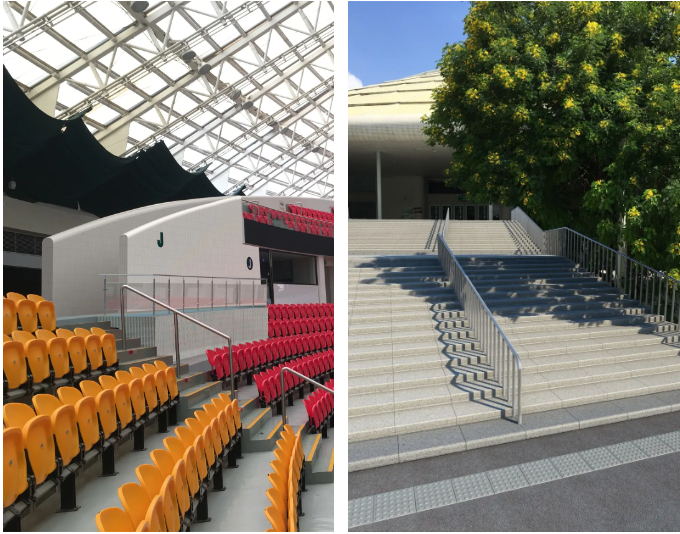 为提升场馆可访问性,本次改造着重完善无障碍设备设施,包括无障碍席位、无障碍扶手、无障碍标识及指引标牌、盲道、无障碍低位服务台、无障碍智能服务桩和查询屏、无障碍卫生间和淋浴室等。无障碍专项设计将覆盖整个场馆,从停车场到场馆各出入口,从公共区域到竞赛区域,确保场馆无障碍设施建设规范化、国际化、人性化;确保每个人都能够享受到体育运动的乐趣,并保障足够的安全,促进社会的包容与共融。