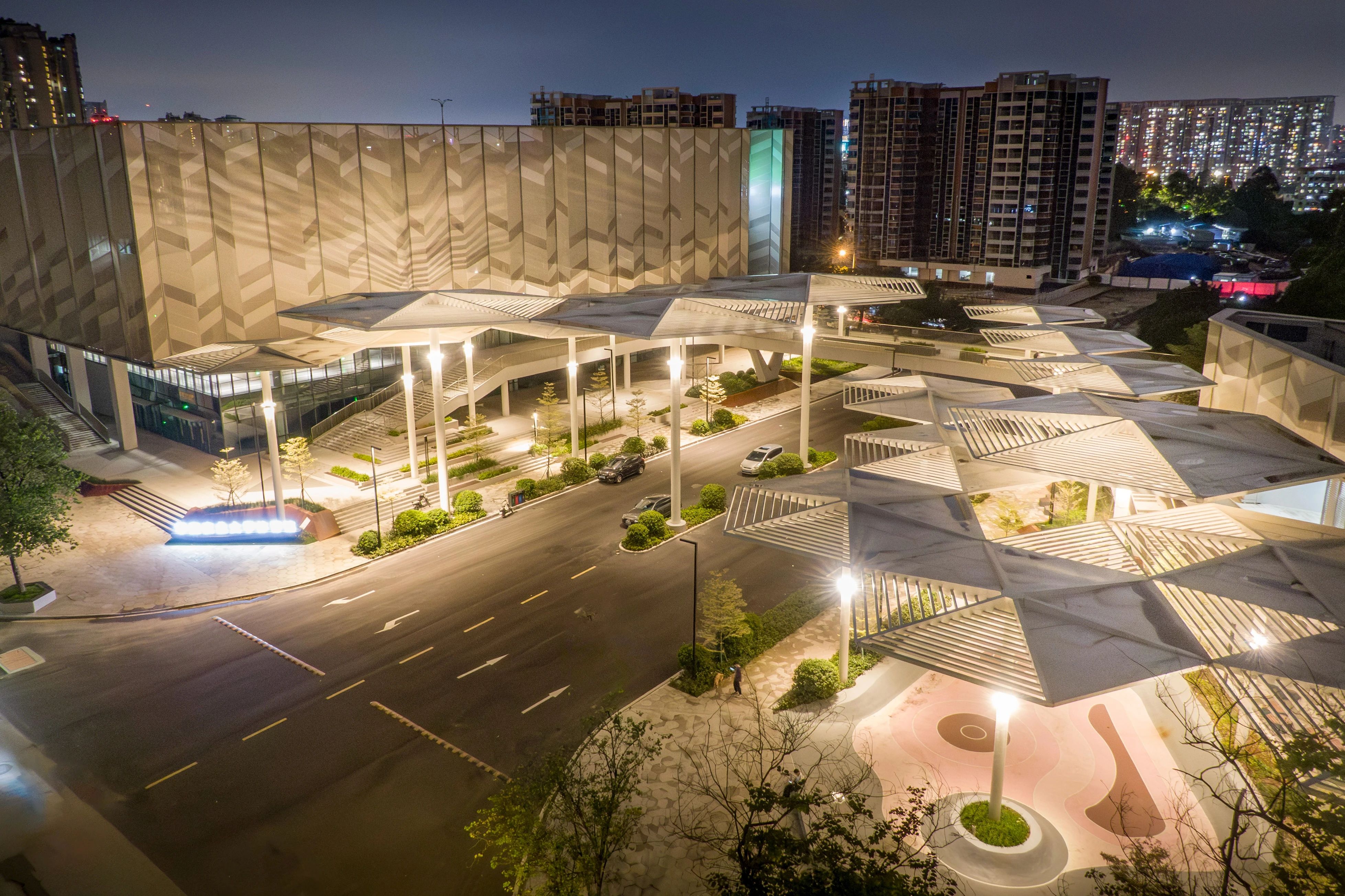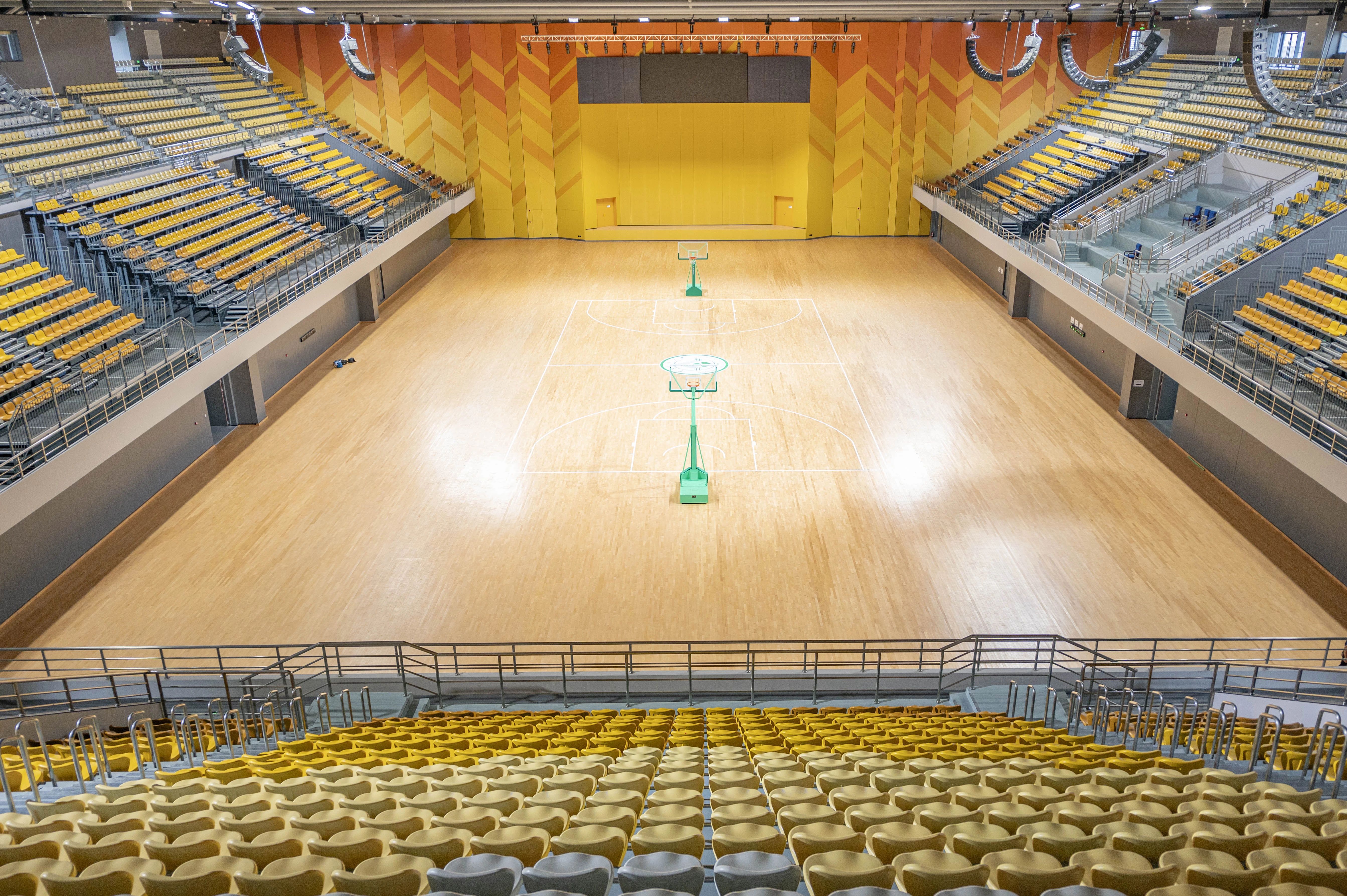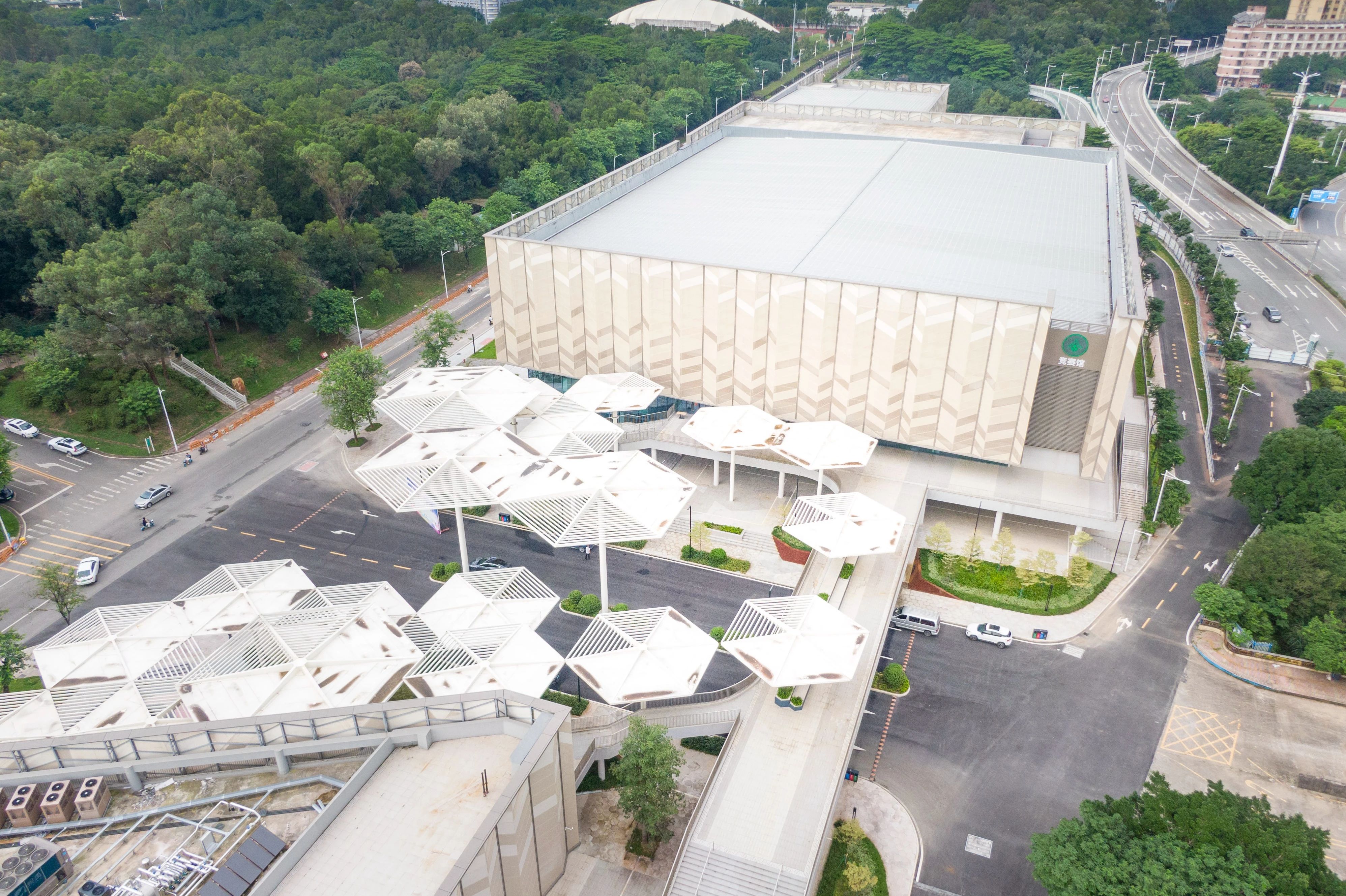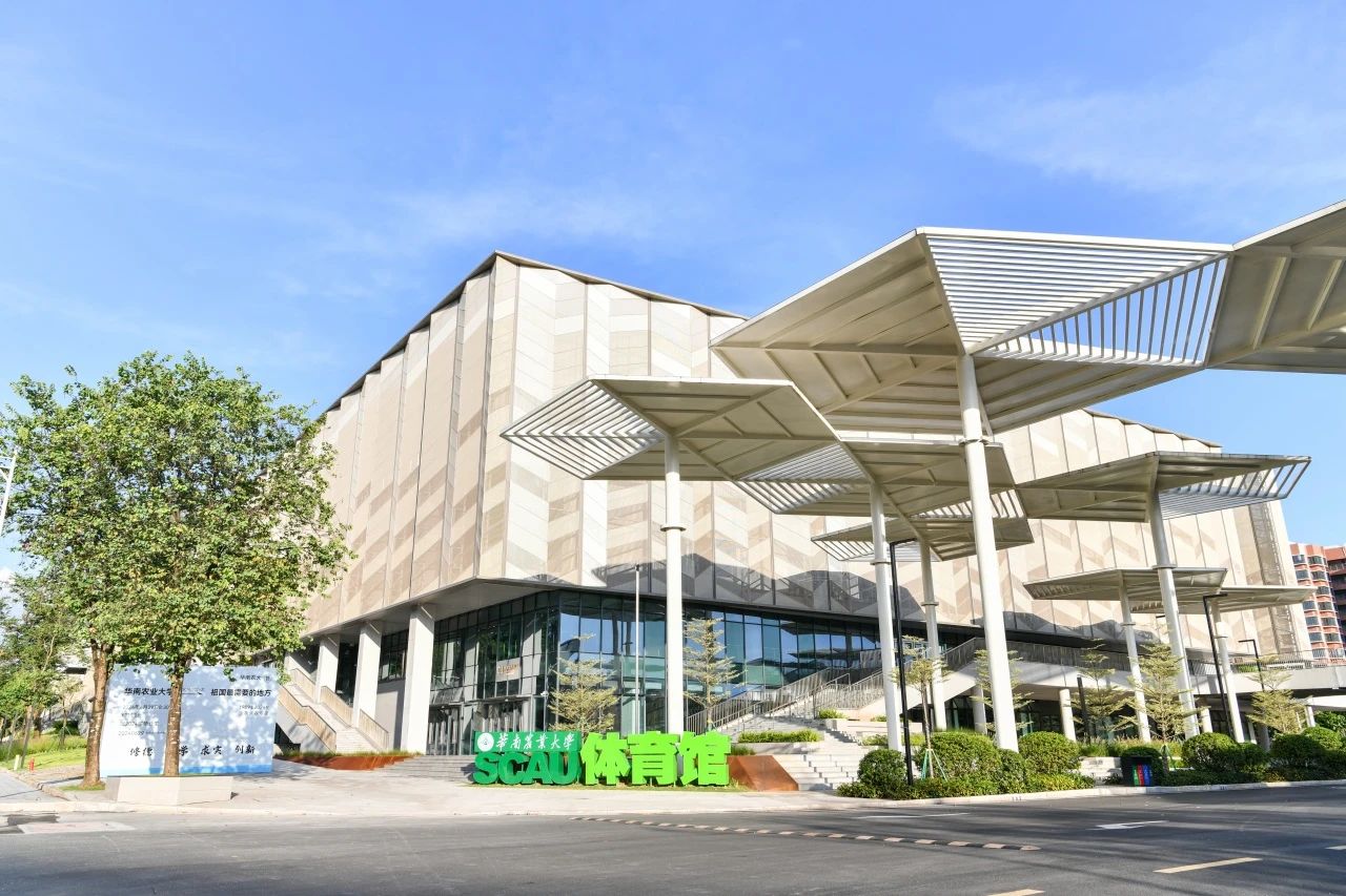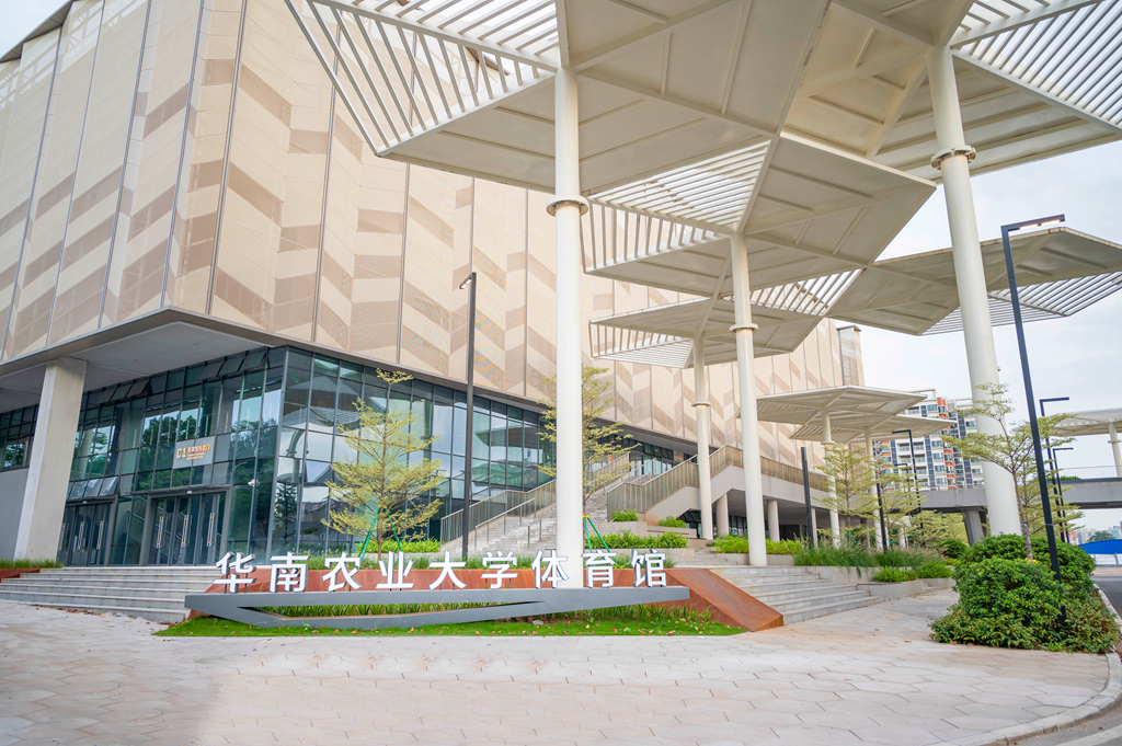 华南农业大学体育馆由华南理工大学建筑设计研究院何镜堂院士团队设计、中国建筑第八工程局承建,总建筑面积52448.48㎡,包括竞赛馆、训练馆及游泳馆和配套服务功能用房等,主场馆可容纳7570人。