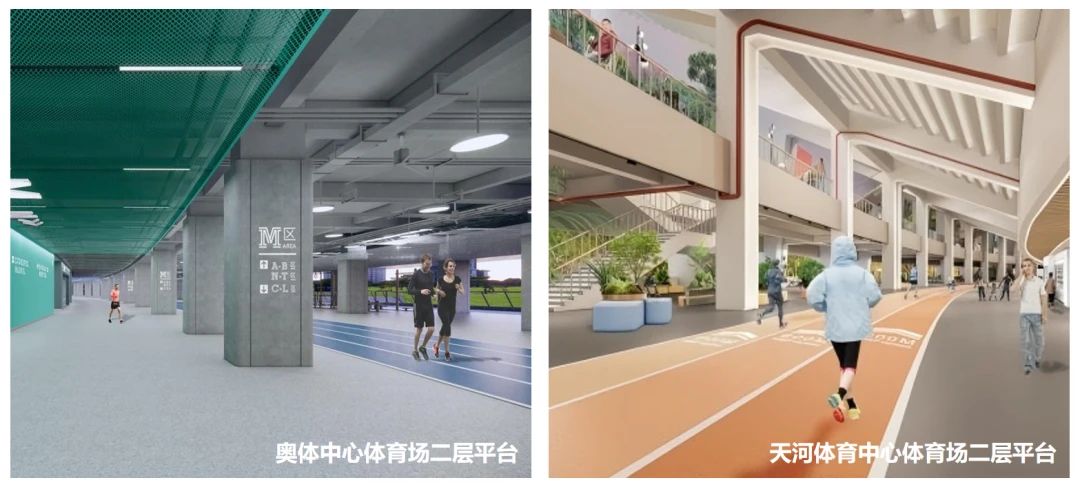 场馆改造兼顾赛时与赛后使用需求,确保赛后场馆功能空间灵活转换,提高场馆全生命周期的资源利用率。改造构建“一场馆多场景”运营模式,如广东奥林匹克体育中心和天河体育中心体育场充分利用二层平台打造环形跑道,赛时可作为观众大型疏散平台,赛后则是全民运动、休闲、观光的共享空间。开放共享的体育设施,将全民健身引入场馆,推动体育产业可持续发展。