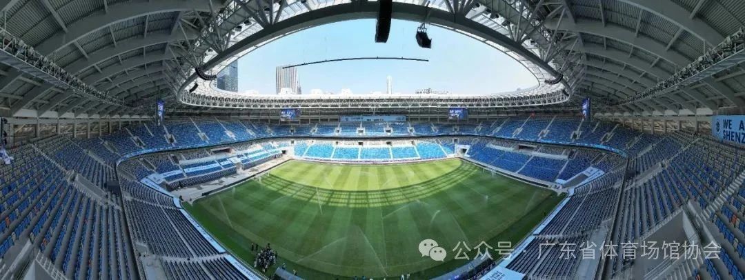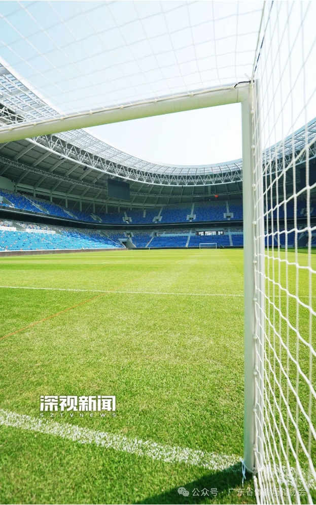 深圳市体育中心体育场历时近8个月,以极致标准打造出高规格绿茵场,每一寸的草皮都凝聚匠心。层次分明的深浅条状分布,使绿茵场与天蓝色的看台浑然天成。